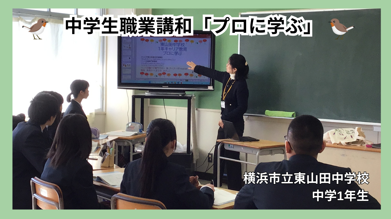 21名の様々な職業のプロが中学1年生8名に対して1人ずつ担当し、職業当てクイズから始まり仕事の内容の説明から生徒からの質問に答えていきます。