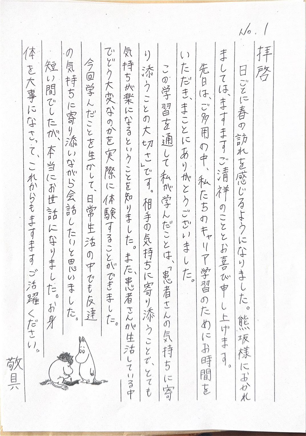 癌になってどれだけ大変か、知ることでこれから人に優しくなれる、人に寄り添うことが大事だと分かったとか、感想を頂き感動しました。 そして、その中学生が私の仕事や活動を新聞にまとめ、お礼の手紙を書いてくれました。